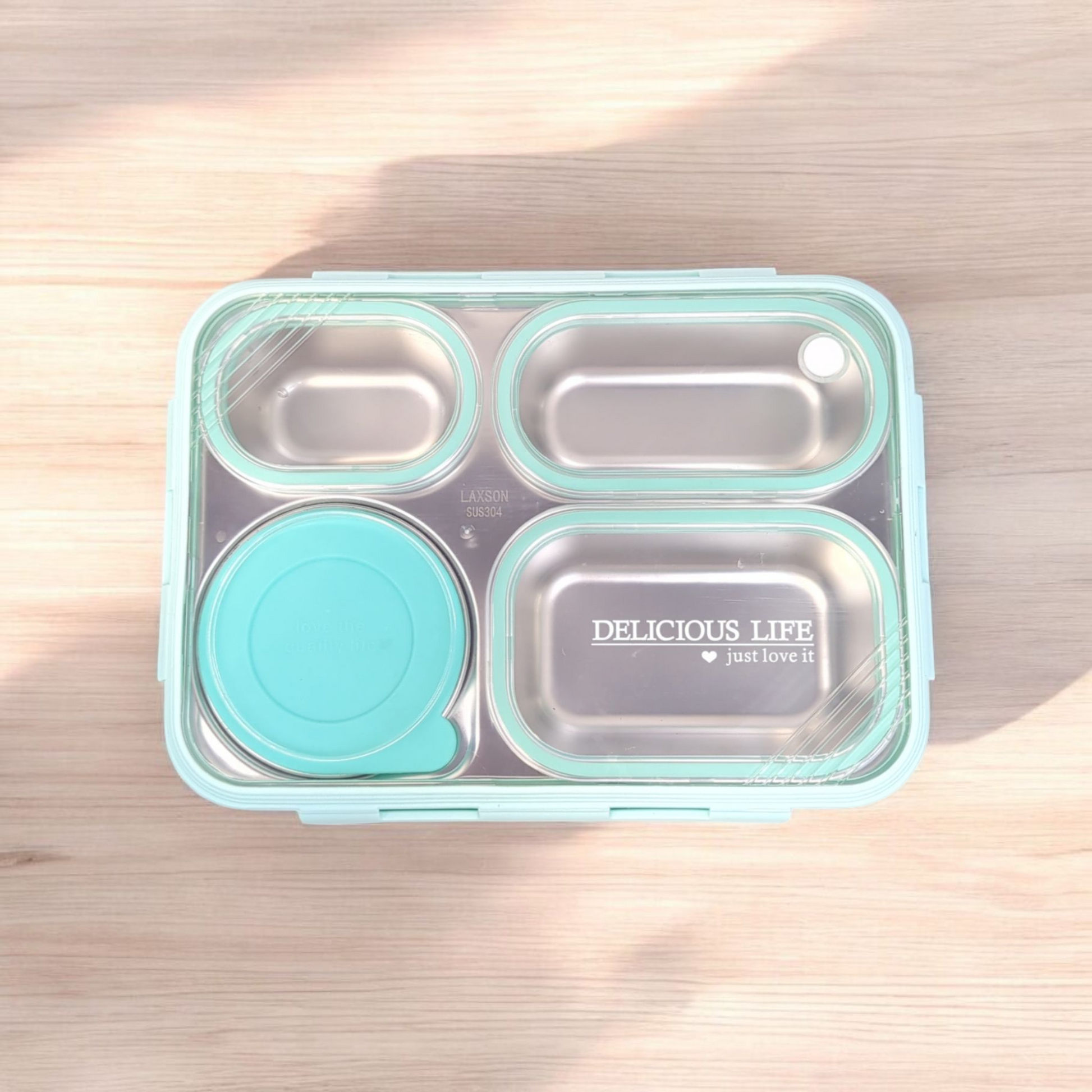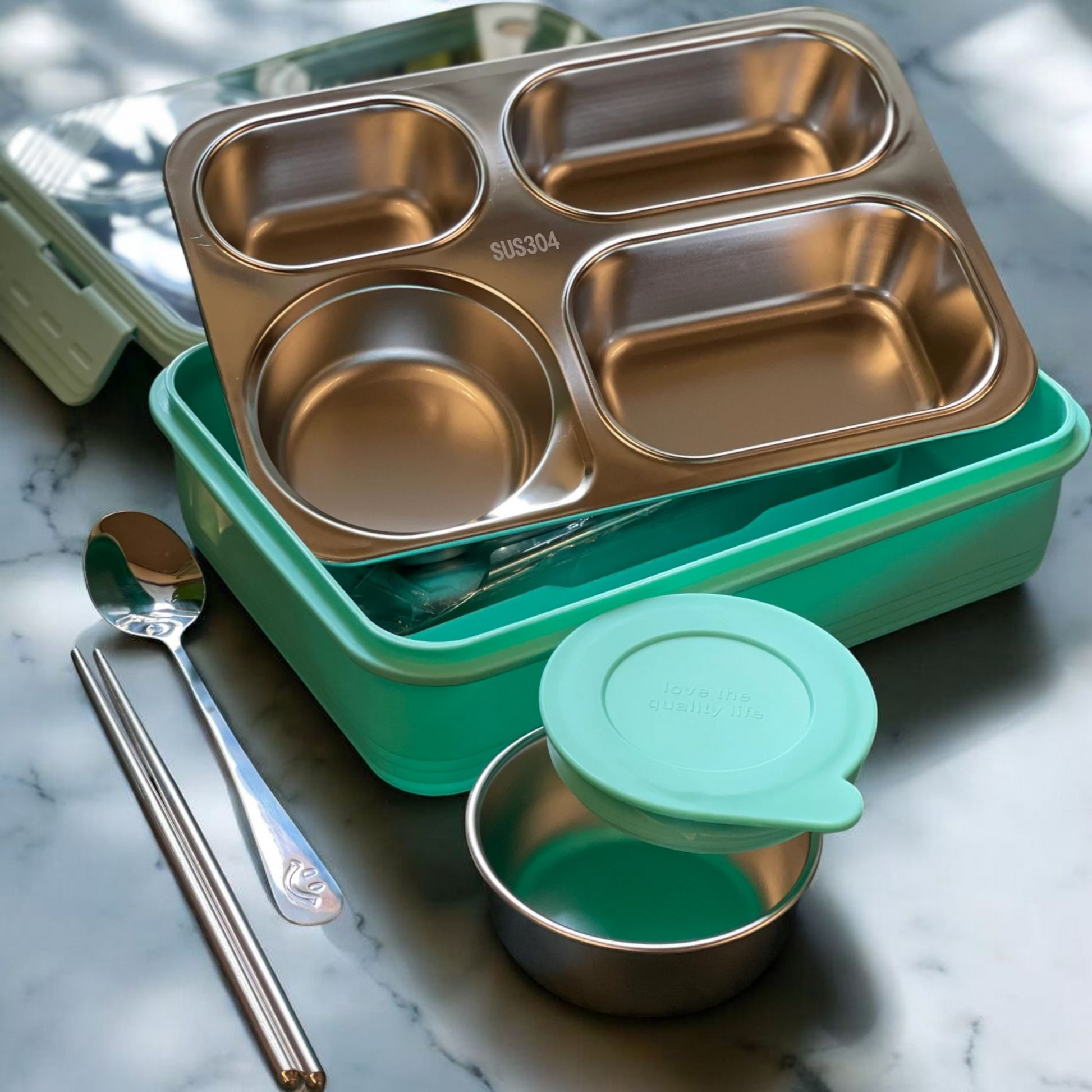 HOMIQUE 4-Compartment Leakproof Bento Lunch Box – Stainless Steel & BPA-Free Plastic