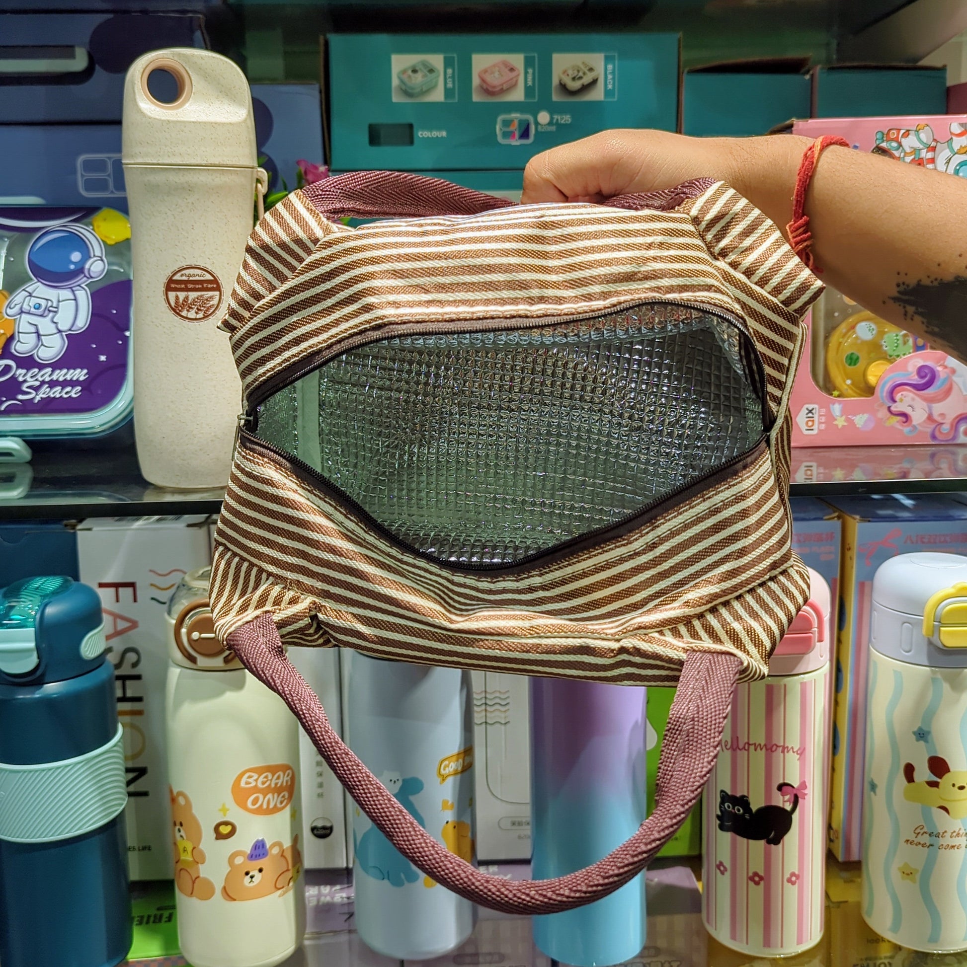 ๐ FREE Insulated Lunch Bag โ Stylish striped design with ample space and thermal insulation.