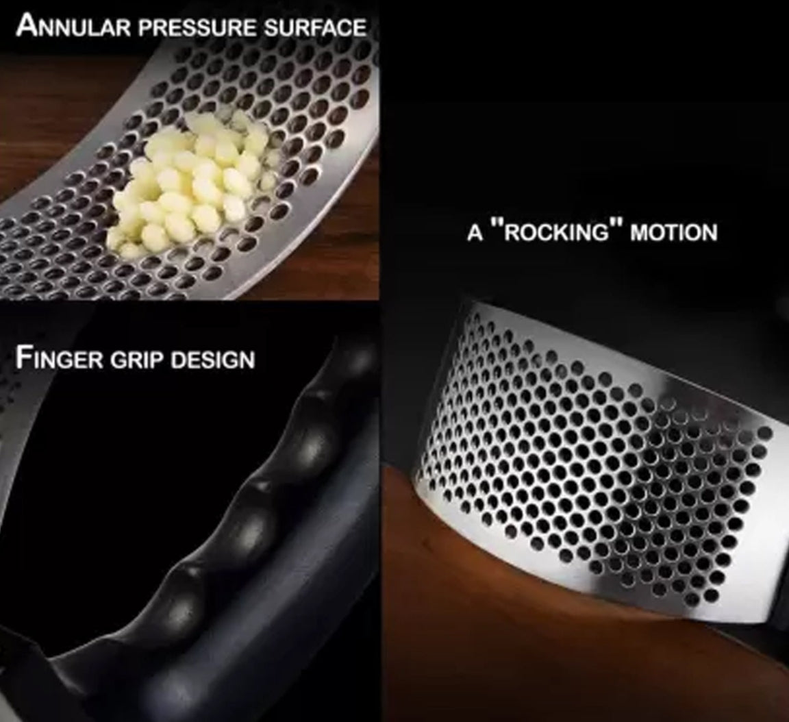 Easy to Use Rocker Design: Simply place a peeled garlic clove under the press and rock back and forth. The downward pressure and curved design make it effortless to mince and crush multiple cloves in seconds, saving you time and energy.